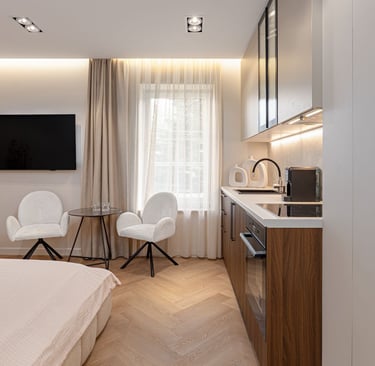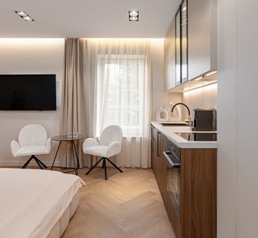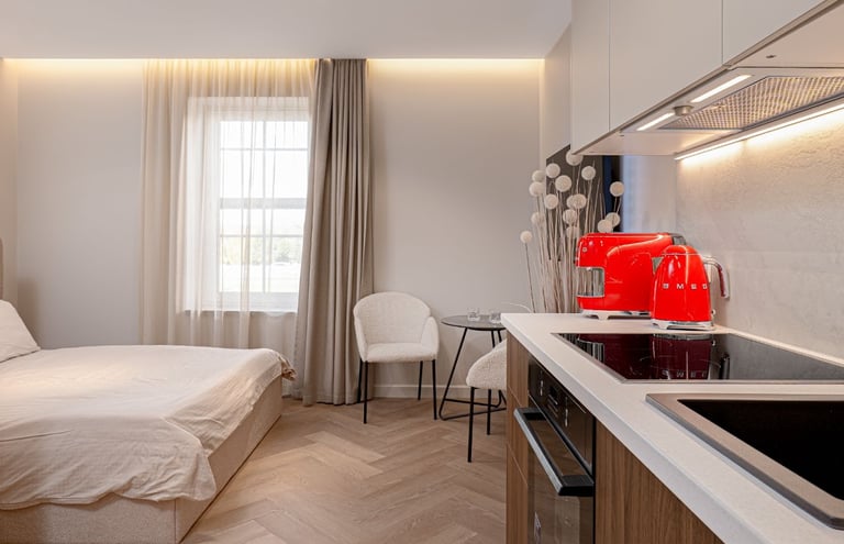 Apartamentai gali būti įrengti su elektroninėmis spynomis, todėl svečiai gali atvykti ir išvykti savarankiškai, be fizinio raktų perdavimo. Tai didina nuomos efektyvumą ir leidžia užtikrinti 24/7 prieinamumą.